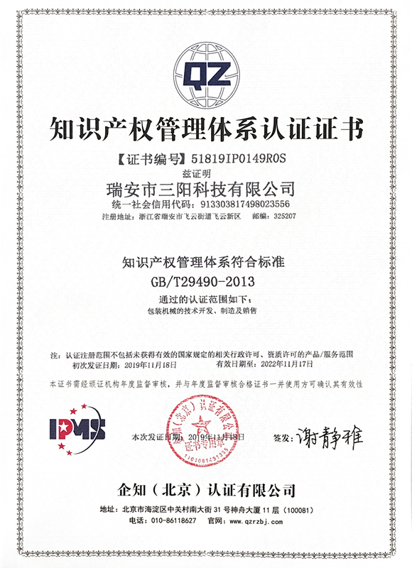 知識產(chǎn)權(quán)管理體系認(rèn)證證書